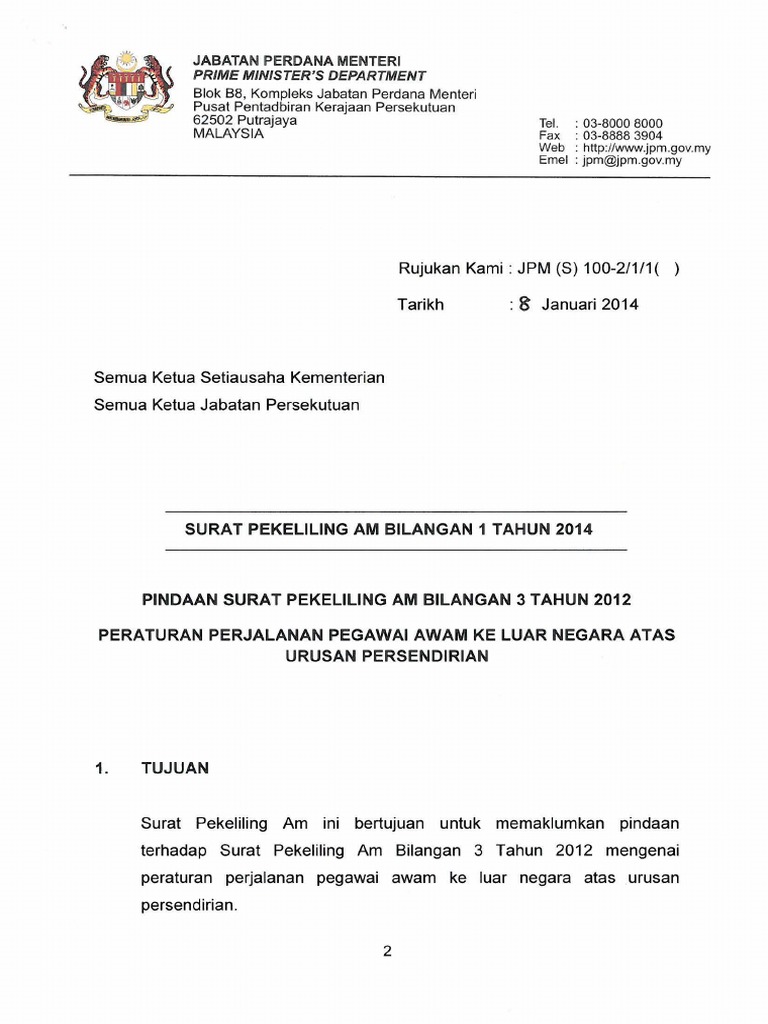 Surat pekeliling am bilangan 1 tahun 2014 :