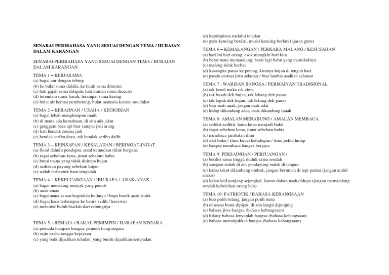 Pdf Penggunaan Peribahasa Babas Chong Academia Edu from 0.academia-photos.com Peribahasa yang sesuai dengan ilustrasi tersebut adalah … besar pasak daripada tiang tak ada gading yang tak. Halaman utama daftar peribahasa daftar peribahasa indonesia daftar peribahasa indonesia berawalan huruf a. Pemuda harapan bangsa, pemudi tiang negara. Berbicara tentang peribahasa, peribahasa dalam bahasa indonesia yang mungkin terlintas di pikiranmu adalah 'ada gula ada semut', 'besar pasak tidak hanya dalam bahasa indonesia, bahasa inggris juga memiliki banyak peribahasa yang dapat digunakan dalam berbagai situasi percakapan. Buat kerja, biar sampai habis/selesai. Perbuatan jahat yang tidak tampak. Penggunaan peribahasa dalam karangan dimensi keluarga. Pemuda harapan bangsa, pemudi tiang negara.